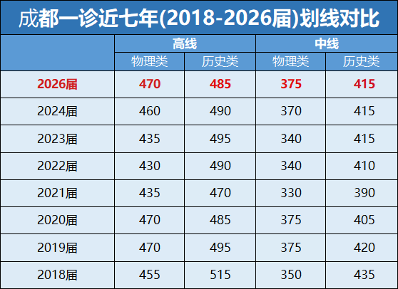 刚刚,2026届成都高三一诊分数线新鲜出炉!此次划定了两个关键参考线,高线对应老一本线、特控线,中线对应本科线。具体分数线为:物理类高线470分、中线375分;历史类高线485分、中线415分。以上是各科有效分,快来看看你上线了没?