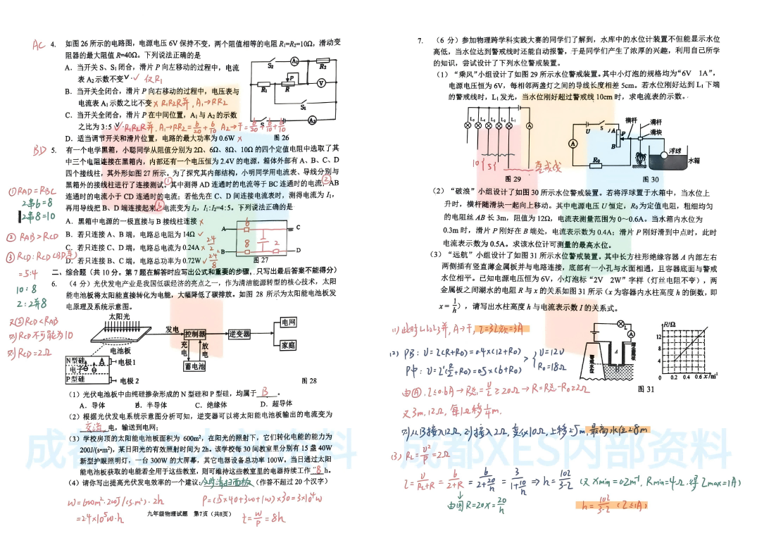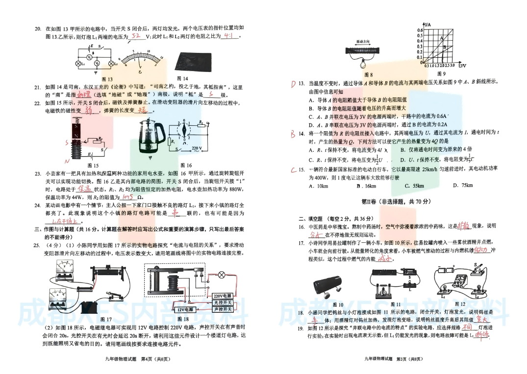 2026年青羊区初三一诊物理试卷及答案,物理真题