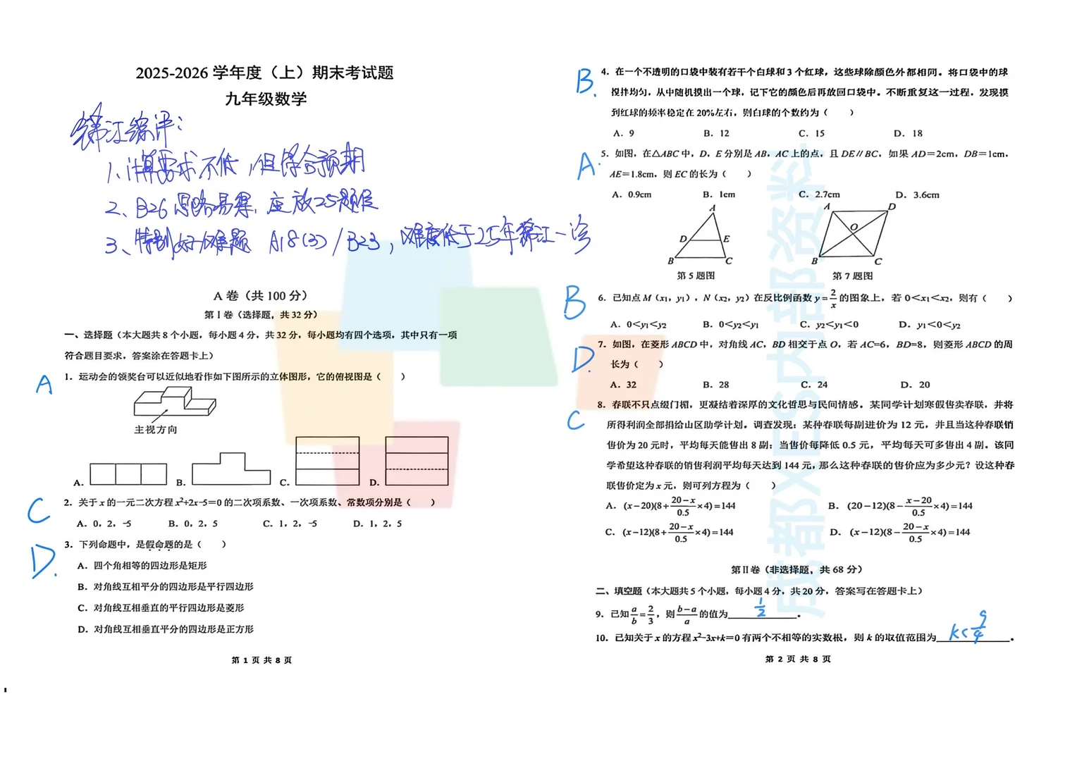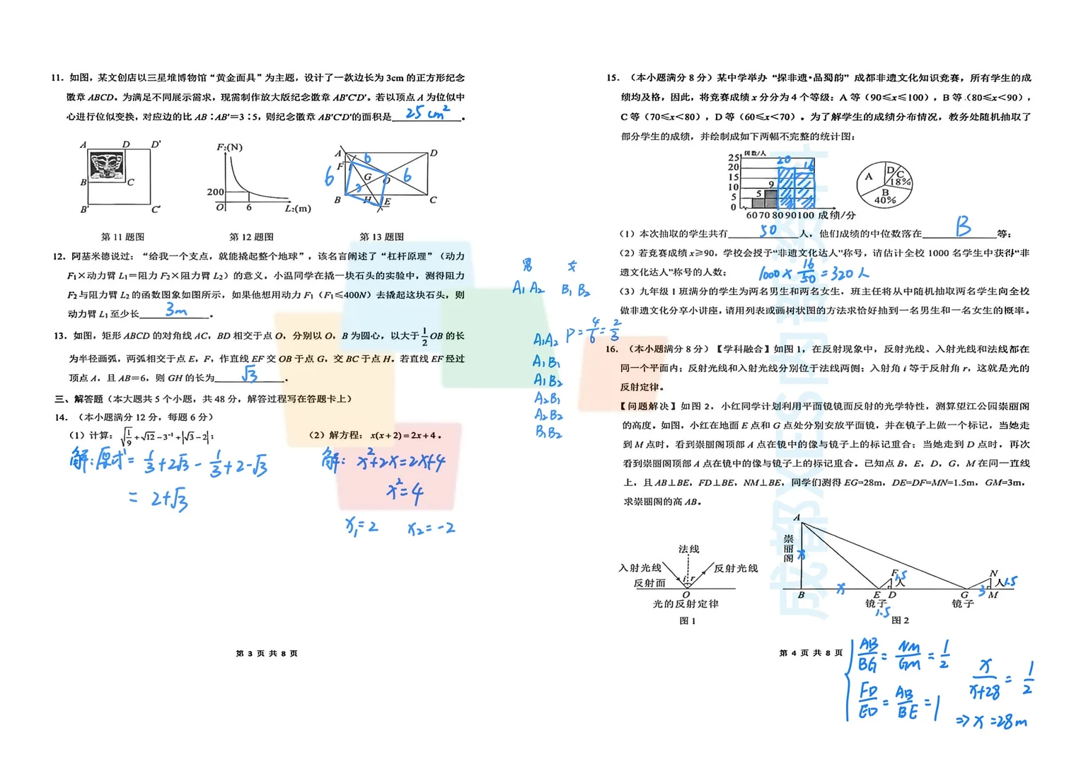 2026成都初三一诊数学物理试卷答案解析