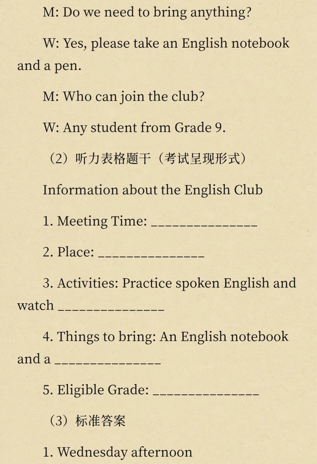 1.听力表格题(A卷)