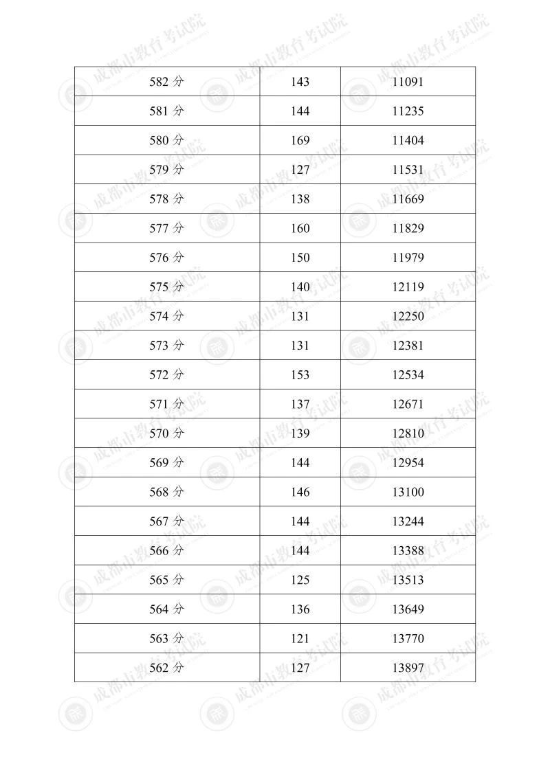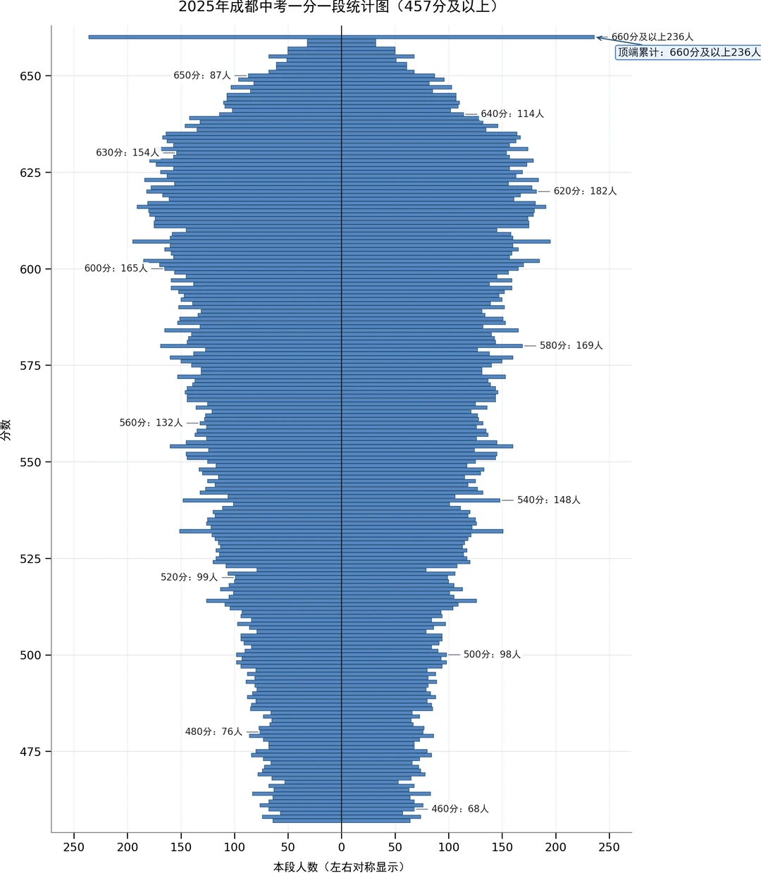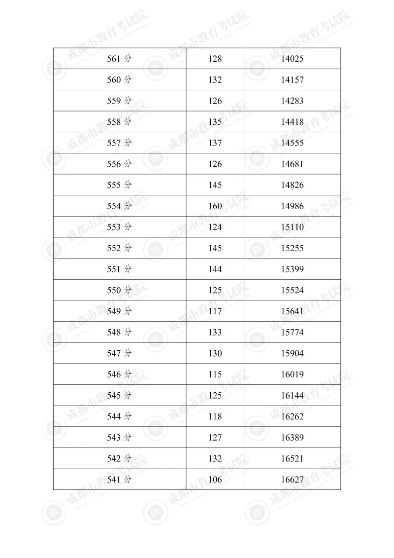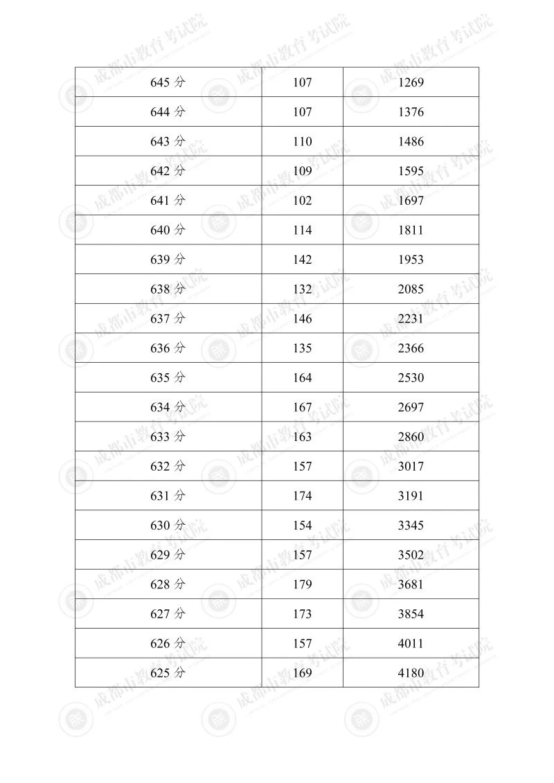 2025年成都中考成绩一分一段分布图,2026中考参考!